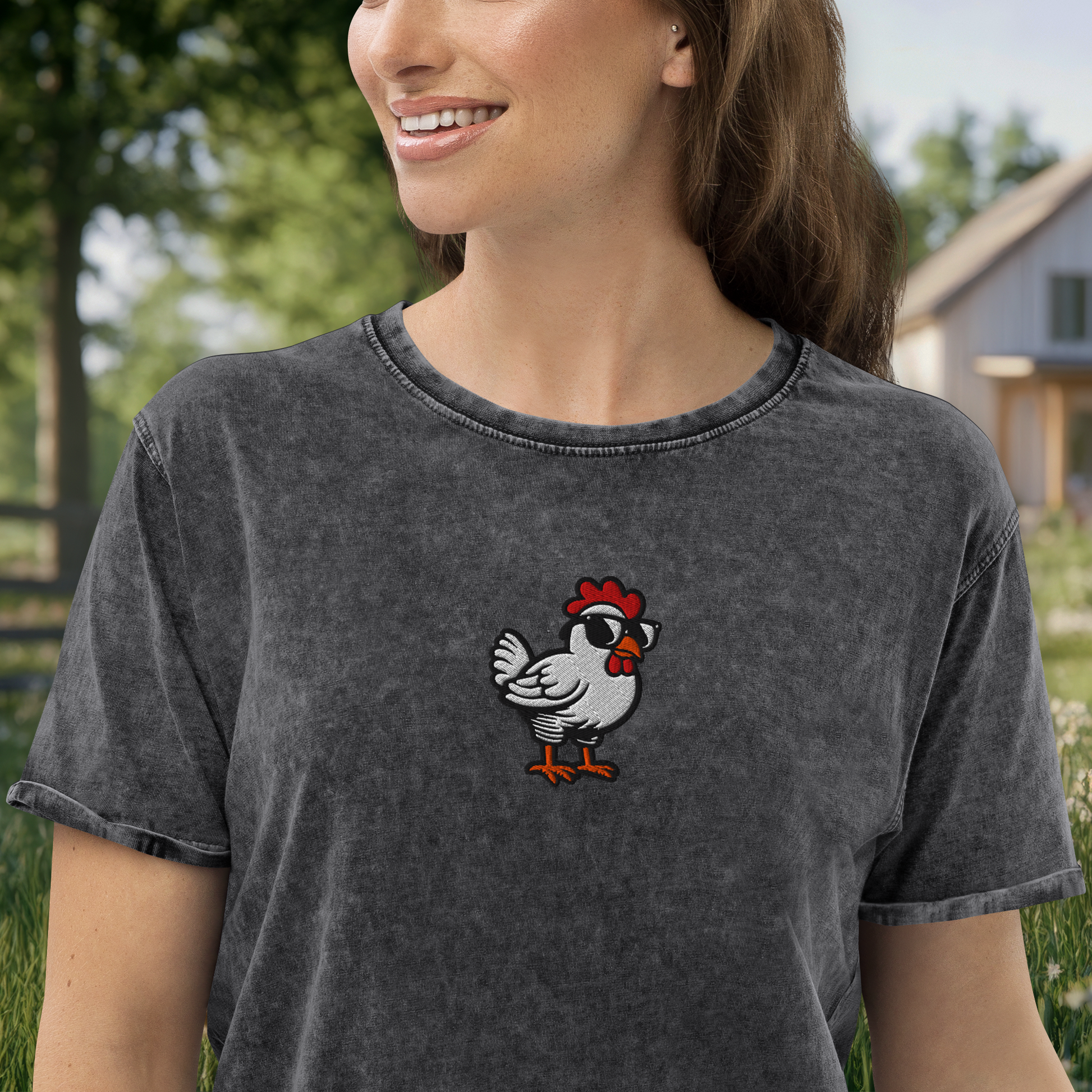 COOL CHIC EMBROIDERED UNISEX DENIM T-SHIRT